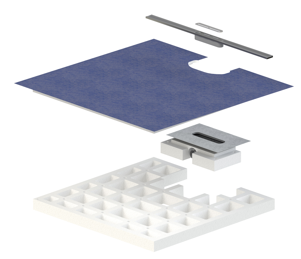 Systemduschelement LINE FLOW für die lineare Entwässerung auf der Belagsebene